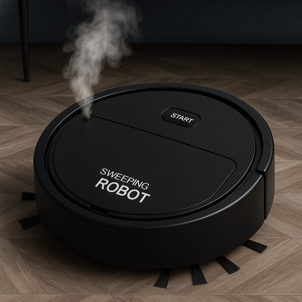 SweepBot™ to inteligentny robot sprzątający 3w1, który zamiata, odkurza i mopuje – samodzielnie. Jest cichy, ultracienki (6 cm) i gotowy do działania po jednym kliknięciu. Poradzi sobie z kurzem, sierścią, okruchami i codziennym bałaganem – nawet pod meblami.